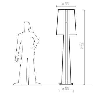La lampada da terra Lady Jane fa parte della famiglia di lampade da terra disegnate da Marc Sadler per Serralunga. La lampada da terra è caratterizzata da una superficie laccata decorata attraverso un particolare metodo di incisione ideato da Serralunga, così da creare un effetto scenografico di luce e ombra unico nel suo genere. La Lady Jane è alta oltre 2 metri ed è adatta sia per interni che per esterni.