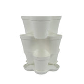 Plana vaso impilabile Roma, in polipropilene con sottovaso, vaso multistrato tridimensionale, vaso per fragole, fioriera da esterno ed interno, tris vasi giardino verticale - White