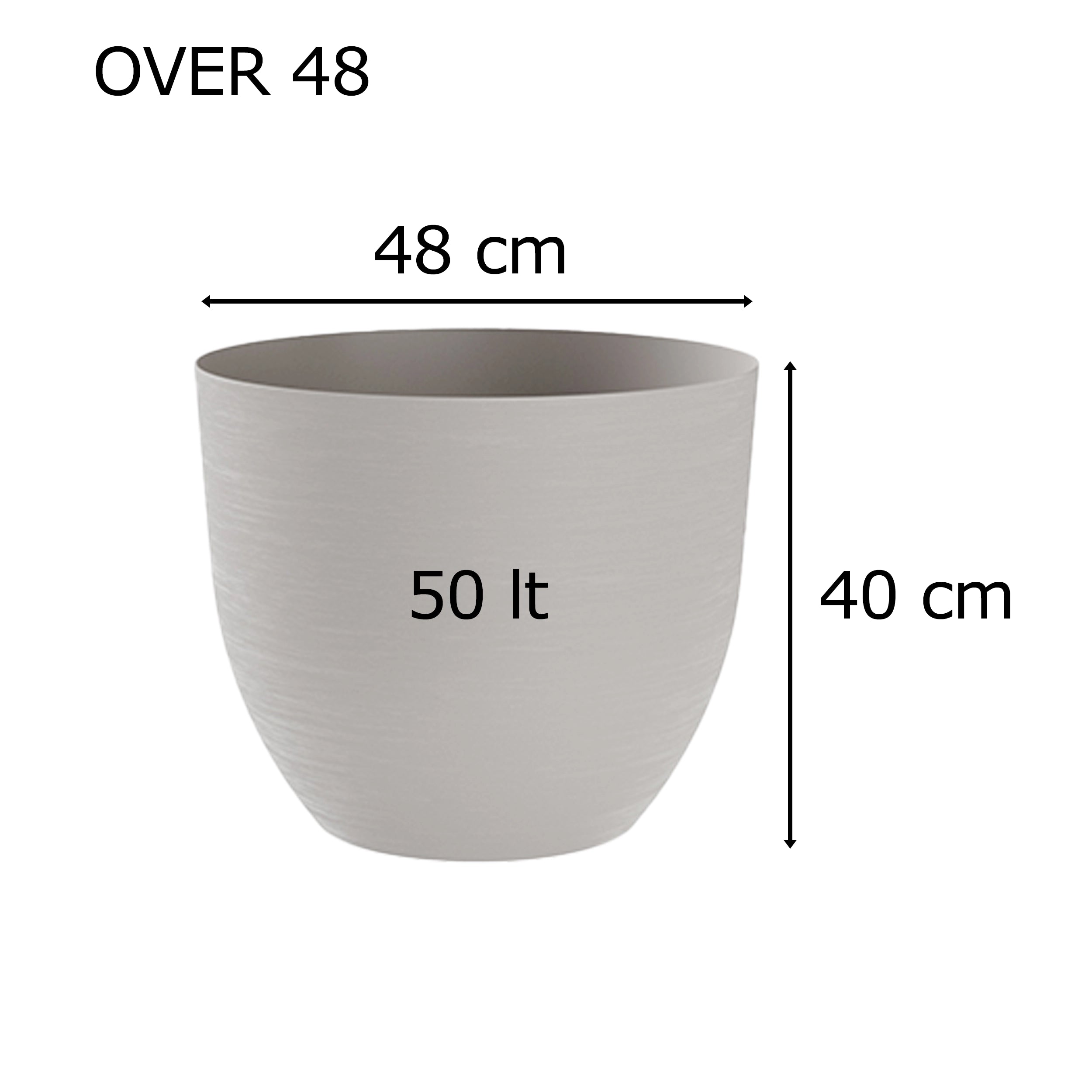 Dimensioni Adattabili: Scegli tra due diverse dimensioni - 38 cm e 48 cm - per soddisfare le tue esigenze di spazio e design. Il modello più piccolo è perfetto per piante più piccole o composizioni multiple, mentre il modello più grande offre spazio sufficiente per piante più imponenti. Qualunque sia la tua preferenza, i vasi Over si adattano perfettamente al tuo giardino, terrazza o balcone.